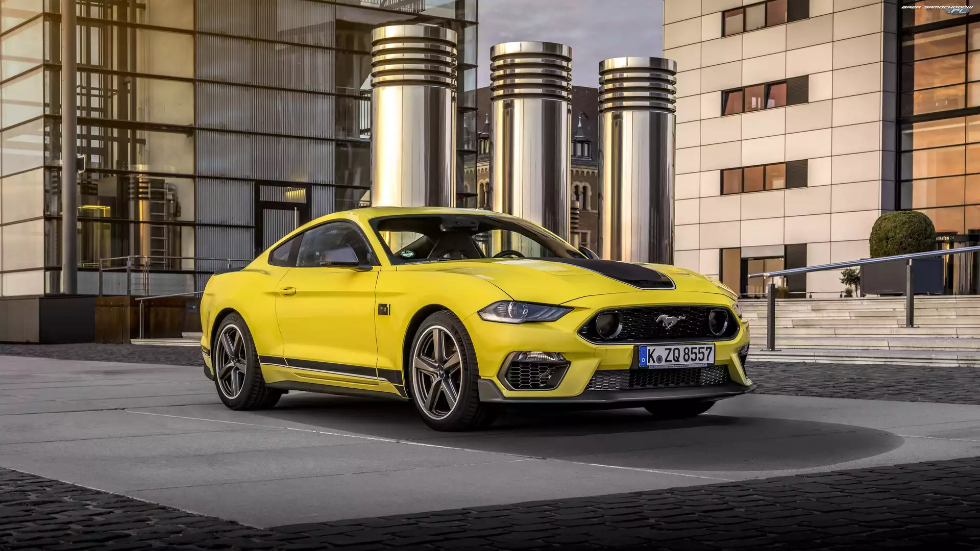 Ford Mustang Mach 1, Budynki, Żółty, 2021- Zdjęcia samochodów